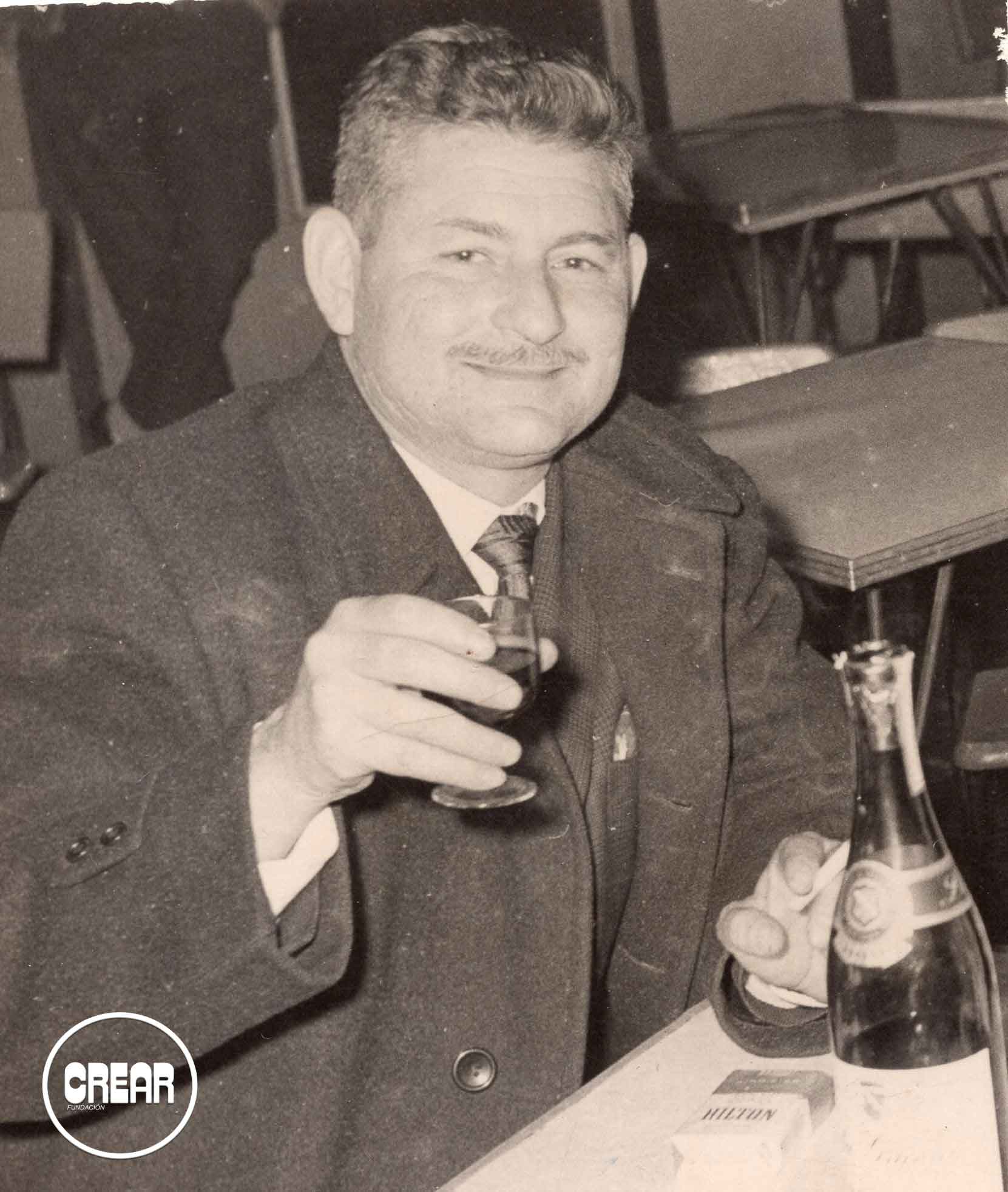 • Descripción : Plano medio en blanco y negro de un hombre con un vaso en su mano, sentado en una mesa